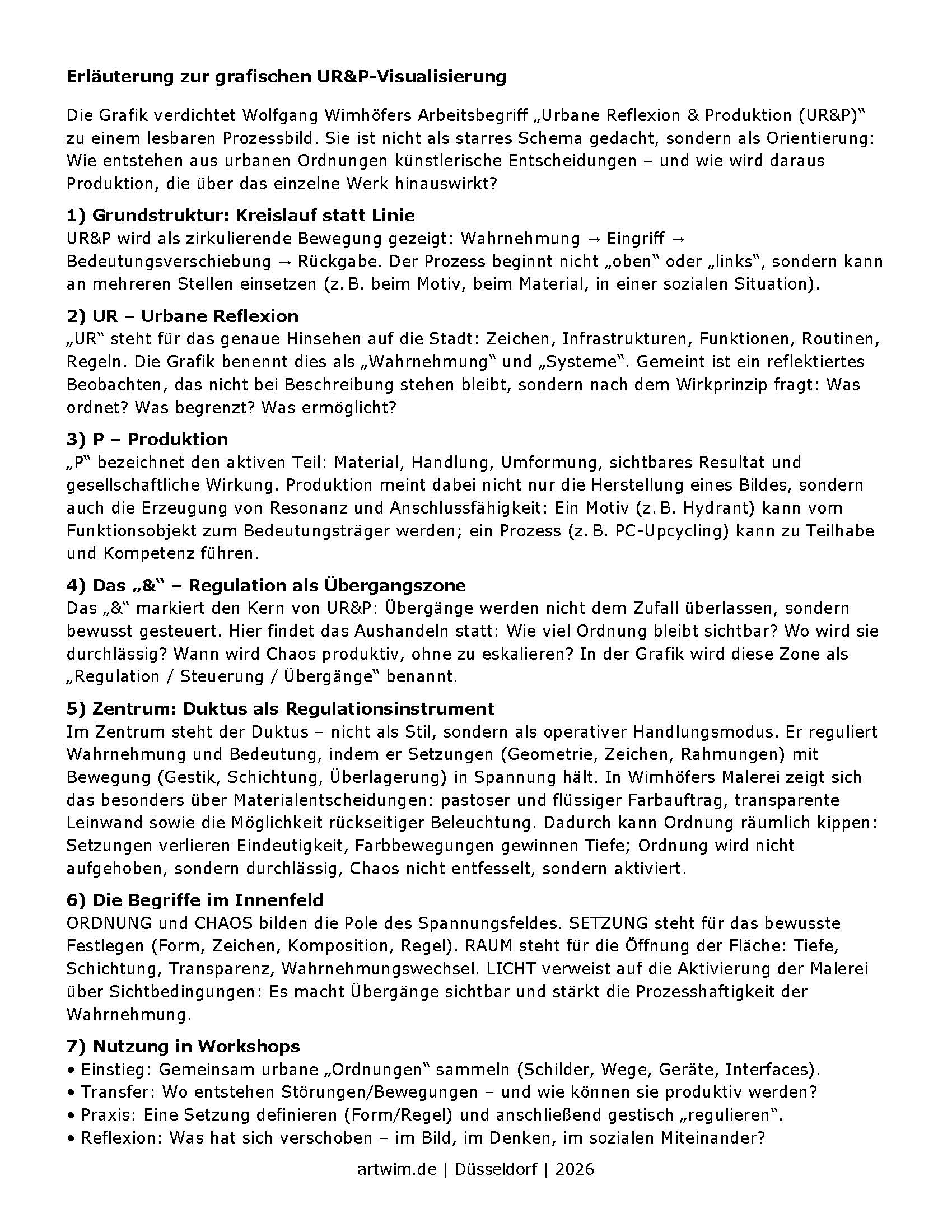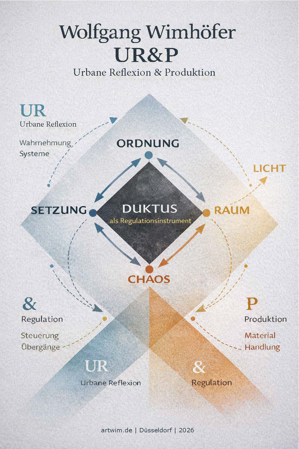 Kunst entsteht dort, wo Wahrnehmung in Handlung übergeht. UR&P verbindet Beobachtung, Eingriff und Transformation zu einem offenen Kreislauf zwischen Chaos und Ordnung als künstlerische und gesellschaftliche Praxis.